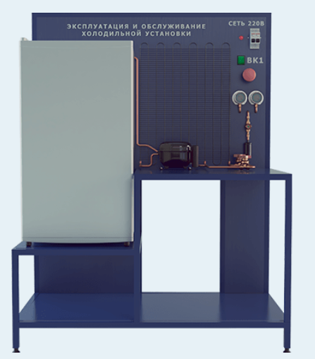 Предназначен для демонстрации работы бытового однокамерного компрессионного холодильника и изучения технологических операций, используемых при эксплуатации, поиске неисправностей и ремонте холодильников. Перечень выполняемых работ: -Изучение устройства однокамерного холодильника; -Изучение технологических операций, используемых при эксплуатации и ремонте; -Изучение основных физических параметров фреона как холодильного агента; -Изучение физических параметров фреона при переходе из одной фазы в другую и влияние внешних факторов на физические параметры холодильной установки; -Исследование температурных режимов и теплообмена; -Анализ изменения удельного расхода электроэнергии и коэффициента рабочего времени однокамерного холодильника; -Расчет холодопроизводительности испарителя однокамерного холодильника; -Расчет теплопроизводительности и коэффициента теплоотдачи конденсатора однокамерного холодильника; -Исследование изменения давления в теплообменных аппаратах однокамерного холодильника
