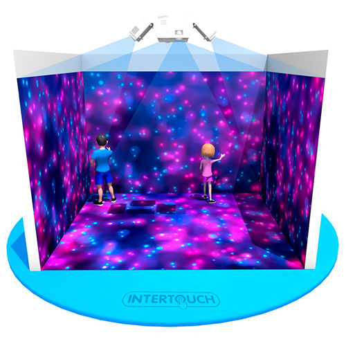 Инновационная интерактивная проекционная система, позволяющая превратить комнату (3 или 4 стены+пол) в единое интерактивное пространство, добиваясь эффекта полного погружения, а также взаимодействовать с проекцией. Изображение проецируется на стены и пол помещения, создавая иммерсивную среду для реализации процесса обучения, развлечений, физкультурных занятий, психодиагностики и коррекционной работы с детьми различных возрастных групп. Оборудование располагается в металлическом боксе, размещенном на потолке, состоит из одного или нескольких вычислительных центров и проекторов, считывающей камеры глубины и/или ip, usb камеры, лидаров/эмиттера (опционально).
