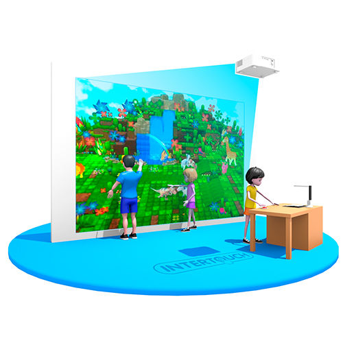 Интерактивный комплекс для детского творчества и развития. Дети могут выбрать тематику игры и шаблон с нарисованным персонажем или пустой шаблон для свободного рисования, раскрасить его, поместить под сканер, после чего персонаж появится в игре и с ним можно будет взаимодействовать методом касания. Также система дополнительно комплектуется сборником игр и серией интерактивных развивающих программ, нацеленных на организацию разносторонней работы с детьми дошкольного и школьного возраста по основным направлениям развития детей, определенным ФГОС и ФГОС ДО. Изображение проецируется на стену или жк-экран. Оборудование располагается в металлическом боксе, размещенном на потолке или полу и состоит из вычислительного центра, проектора (возможна замена проектора на внешний ЖК – экран), камеры глубины/ ip/usb камеры/лидара (опционально), эмиттера или без него. Камера считывает действия и движения игроков, а изображение проецируется на стену или отображается на ЖК-экране.
