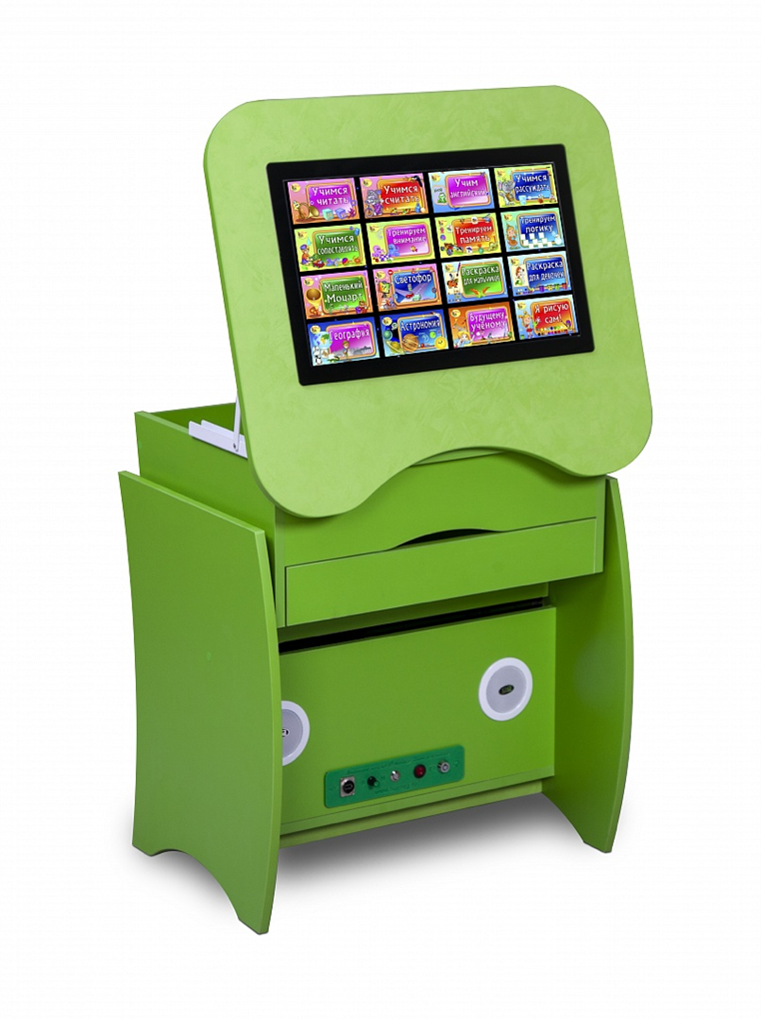 Интерактивный стол «Умничка» из серии «Кисельковое царство» предназначен для детей дошкольного и школьного возраста. Основные функции изделия направлены на обучение и развитие детей в игровой форме, также подходит для детей с ОВЗ. Декоративный корпус изделия выполнен из Ламинированной древесно-стружечной плиты (ЛДСП). В корпус вмонтирован интерактивный сенсорный экран 21,5 Multi-Touch на 10 касаний. Столешница со встроенным интерактивным экраном имеет возможность регулировки угла наклона в трех положениях – 90, 75 и 0 градусов. За все операции изделия отвечает быстродействующий персональный компьютер (ПК), на котором установлена операционная система Windows 10. На компьютер возможно установить любые совместимые с ПО "Windows" приложения.