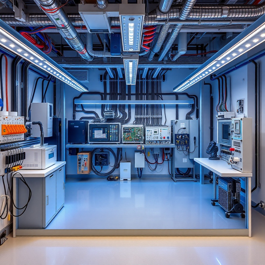 Комплект предназначен для выполнения лабораторных работ с задачами: изучения принципов работы, характеристик и особенностей эксплуатации различного электрооборудования; изучения основных элементов систем автоматики; освоения базовых навыков проектирования, сборки и наладки систем автоматического управления различной сложности с использованием различных компонентов электрооборудования и средств автоматики; освоения навыков программирования промышленных контроллеров для реализации систем автоматического управления; использование программных инструментов для моделирования работы систем автоматики и управления. Лабораторный стенд комплекта представляет собой пространственную конструкцию, содержащую элементы защиты от поражения электрическим током, органы управления и индикации, изучаемое оборудование и смоделированные системы автоматики, датчики и контрольно-измерительные приборы, исполнительные механизмы и внешние вспомогательные устройства, учебные пособия и методическое обеспечение.
