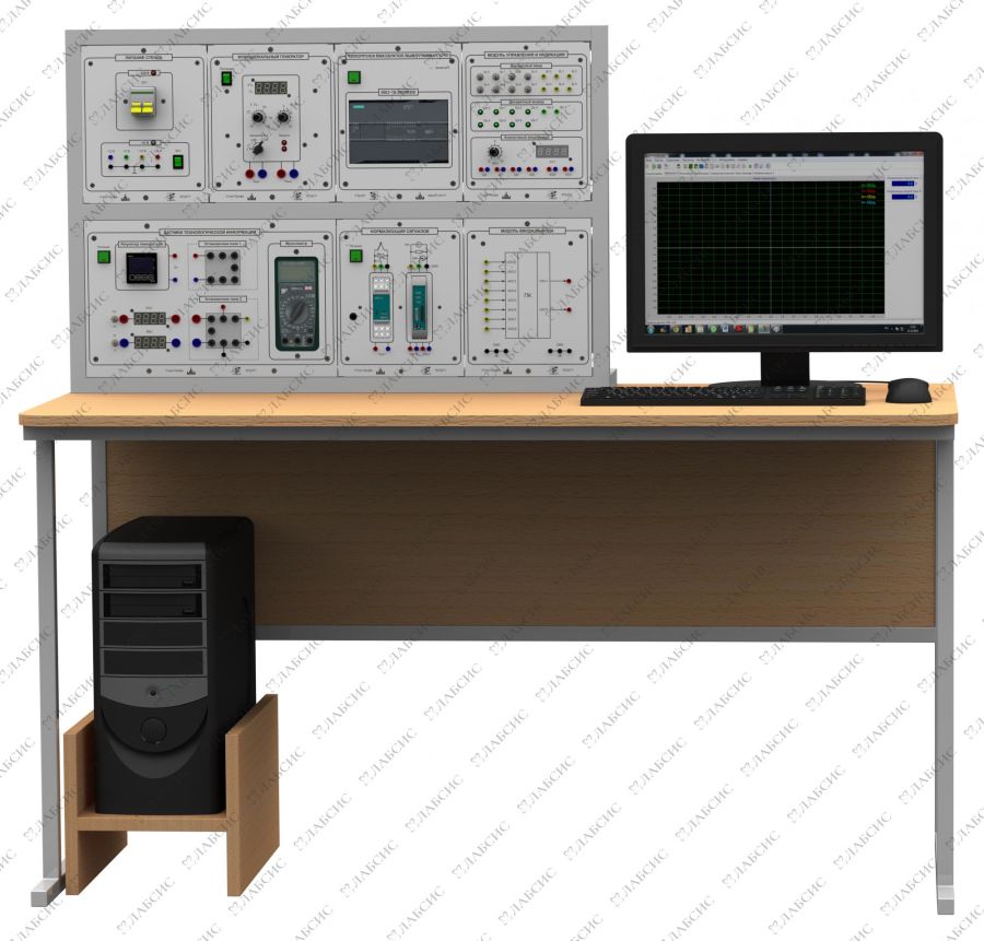 Комплект учебного оборудования предназначен для выполнения лабораторных работ по изучению принципов действия и исследованию характеристик элементов КИПиА студентами электротехнических специальностей ВУЗов, изучающих дисциплины «Автоматизация типовых технологических процессов», «Системы программного управления», «Элементы систем автоматики», «Датчики и исполнительные органы систем управления полевого уровня». На оборудовании изучаются основы конфигурирования и программирования ПЛК и модулей ввода/вывода, основы работы и рабочие характеристики пассивных и активных датчиков, основы работы и методика расчета нормирующих преобразователей, схемы подключения датчиков к контрольно-измерительной системе, принципы измерений в автоматическом режиме. Конструкция оборудования исключает доступ к электрическим цепям высокого напряжения и другим опасным для человека воздействиям