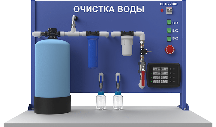 Экспериментальное исследование эффективности очистки воды сорбционным методом. Перечень выполняемых работ на учебном стенде: - Изучение процессов разделения суспензий на механических и сорбционных фильтрах.- Изучение способов повышения эффективности системы.- Ознакомиться с основными методами очистки воды.- Ознакомиться с конструкцией и принципом действия устройства для очистки воды.- Экспериментально определить эффективность очистки воды от примесей (загрязняющих веществ).- Определение мутности воды.- Определение концентрации ионов.- Экспериментальное определение эффективности фильтров и их гидравлического сопротивления