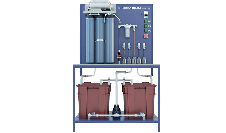 Экспериментальное определение эффективности промышленной системы очистки воды. Перечень выполняемых работ на учебном стенде: - Изучение многоступенчатой очистки воды. - Определение гидравлических сопротивлений. - Определение начальной и конечной концентрации загрязняющих веществ инструментальными методами. - Определение мутности воды. - Определение концентрации ионов. - Определение начальных и конечных значений обобщенных показателей загрязненности сточных вод. - Определение эффективности работы фильтров