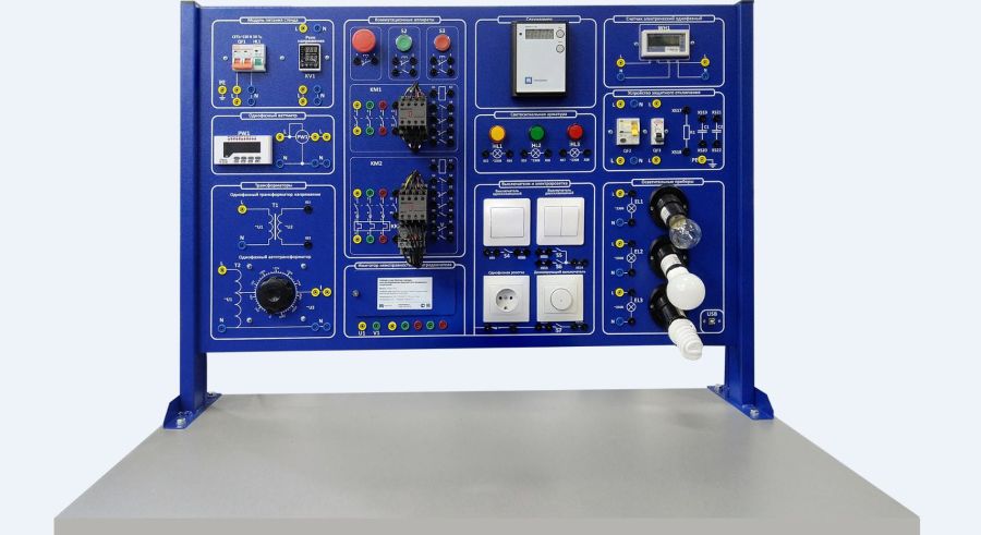 Предназначен для практического изучения работы электрооборудования жилых и офисных помещений,получения практических навыков монтажа и наладки осветительной сети, схем учета, распределения, коммутации и защиты в электрических сетях. Перечень выполняемых работ: -Сборка и проверка цепи распределительного щита (РЩ) квартиры с двухпроводной электрической сетью и УЗО; -Сборка и проверка цепи РЩ квартиры повышенной комфортности; -Сборка и проверка цепи включения ламп накаливания,светодиодных и люминесцентных ламп; -Сборка и проверка групповой двухпроводной сети с УЗО; -Сборка и проверка групповой электрической сети освещения прихожей,ванной и туалетной комнат, электрического звонка в типовой квартире; -Сборка и проверка групповой электрической сети розеток прихожей и кухни в типовой квартире; -Сборка и проверка групповой электрической сети освещения и розеток ванной и туалетной комнат в квартире повышенной комфортности; -Сборка и проверка групповой электрической сети освещения и розеток офиса