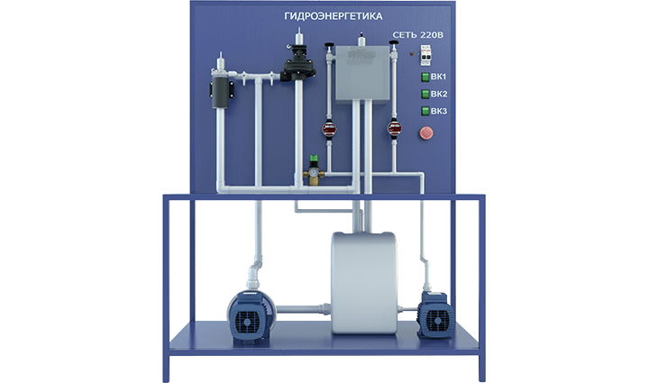 Стенд по изучению принципа действия и испытания наиболее распространенных гидравлических турбин. Перечень выполняемых работ на учебном стенде: - Изучение конструкции турбины Пелтона.- Изучение конструкции радиально-осевой турбины.- Изучение конструкции осевой турбины.- Изучение конструкции генератора.- Испытание системы турбина Пелтона – генератор – нагрузка.- Исследование характеристик системы турбина Пелтона – генератор – нагрузка при работе с одним сопловым аппаратом.- Исследование характеристик системы турбина Пелтона – генератор – нагрузка при работе с двумя сопловым аппаратами.- Исследование характеристик системы радиально-осевая турбина – генератор – нагрузка