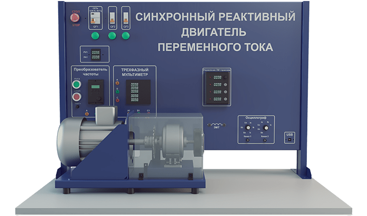 Изучение рабочих характеристик синхронного реактивного двигателя переменного тока. Изучение способов регулирования синхронного реактивного двигателя, исследование полупроводникового преобразователя частоты для управления двигателем. Перечень выполняемых работ на учебном стенде: - Исследование синхронного реактивного двигателя переменного тока (ДСР). Построение рабочих характеристик двигателя. Определение момента входа в синхронизм и выхода из синхронизма - Частотное управление синхронным реактивным двигателем. Исследование функций преобразователя частоты (ПЧ). Исследование системы «ПЧ–СД». Определение КПД электропривода - Исследование динамических свойств электропривода с синхронным реактивным двигателем
