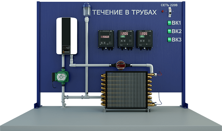 Изучение конструкции и принципов работы теплообменных аппаратов различного типа: пластинчатого, «труба в трубе» и воздушного охладителя, исследование теплофизических свойств жидкости. Перечень выполняемых работ на учебном стенде: