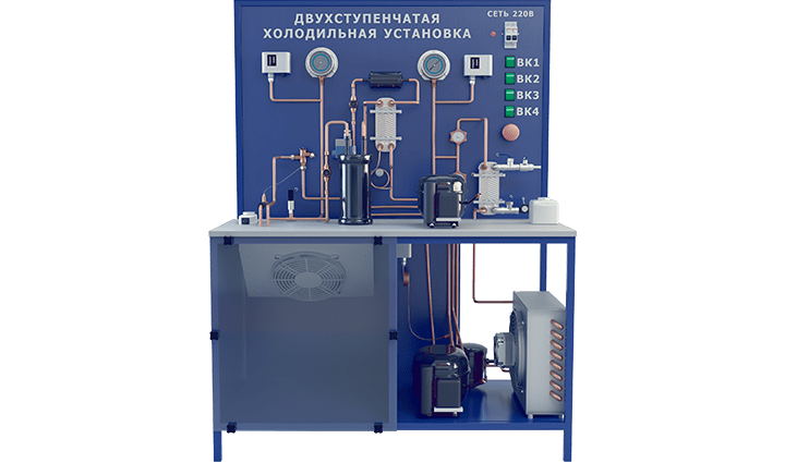 Подробное изучение всех узлов и режимов работы двухступенчатой холодильной установки. Перечень выполняемых работ на учебном стенде: