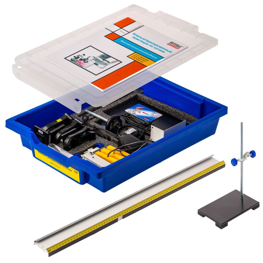 Комплект предназначен для проведения 4-х работ по геометрической и волновой оптике, которые выполняются на экспериментальном оборудовании, и одной работы по компьютерному моделированию эксперимента по интерференции света в схеме Юнга. Комплект позволяет обучать основным этапам проведения экспериментального исследования, а также позволяет проводить с учениками совместные исследования. Регистрация данных (ход лучей, интерференционная или дифракционная картина) осуществляется с помощью веб-камеры, подключаемой к USB-входу компьютера.