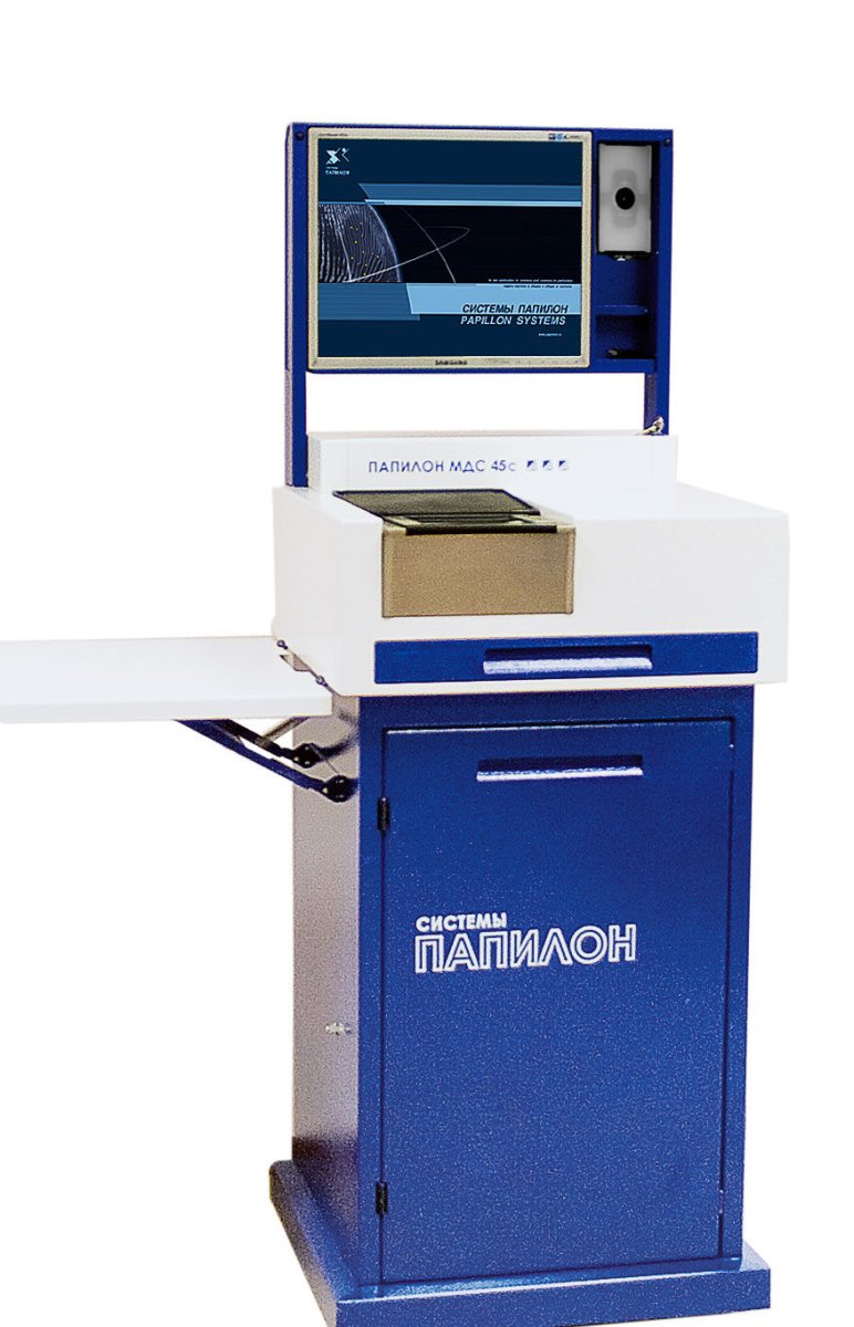 Многофункциональная дактилоскопическая станция для регистрации и оперативных проверок по дактилоскопической информации «ПАПИЛОН МДС-45» (далее - Станция) предназначена для дактилоскопической регистрации личности, а также идентификации личности по оттиску/оттискам пальцев в режиме реального времени. Станция обеспечивает выполнение следующих функций: а) сканирование отпечатков пальцев рук и ладоней человека; б) создание электронных дактилокарт; в) соединение с удалённой базой данных АДИС, передача и приём информации, в том числе при проведении оперативных проверок личности (экспресс-идентификации по дактилоскопической информации); г) печать информации на листах формата А4; д) опционально - сканирование с бумажных носителей, добавление электронных графических подписей в формируемую электронную дактилокарту, создание фотографических изображений.