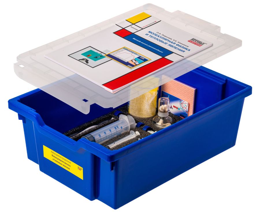 Набор демонстрационный предназначен для проведения демонстрационных опытов по изучению тепловых явлений, законов молекулярно-кинетической теории. Набор демонстрационный обеспечивает проведение демонстрационных экспериментов по следующим разделам: Зависимость температуры кипения от давления, Плавление и отвердевание твердых тел, Теплопроводность, Конвекция в газе, Установление теплового равновесия и количество теплоты, переданное от одного тела к другому, Теплообмен между слоями жидкости, Количество теплоты и теплоемкость, Работа силы трения, Изменение внутренней энергии при деформации тела, Теплота сгорания топлива, Испарение вещества.