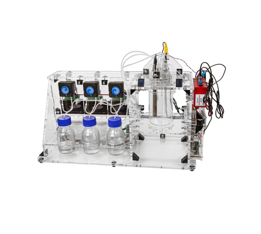 Робототехнический комплекс предназначен для смешивания жидкостей в заданных пропорциях. Робототехнический комплекс представляет собой установку для проведения химических синтезов в контролируемых условиях. Робототехнический комплекс оснащен роботизированной системой управления и контроля протекания химических реакций. Робототехнический комплекс используется с компьютером. Робототехнический комплекс представляет собой настольную установку с отсеком для смешиваемых реагентов, коммутационным отсеком, отсеком протекания химической реакции.