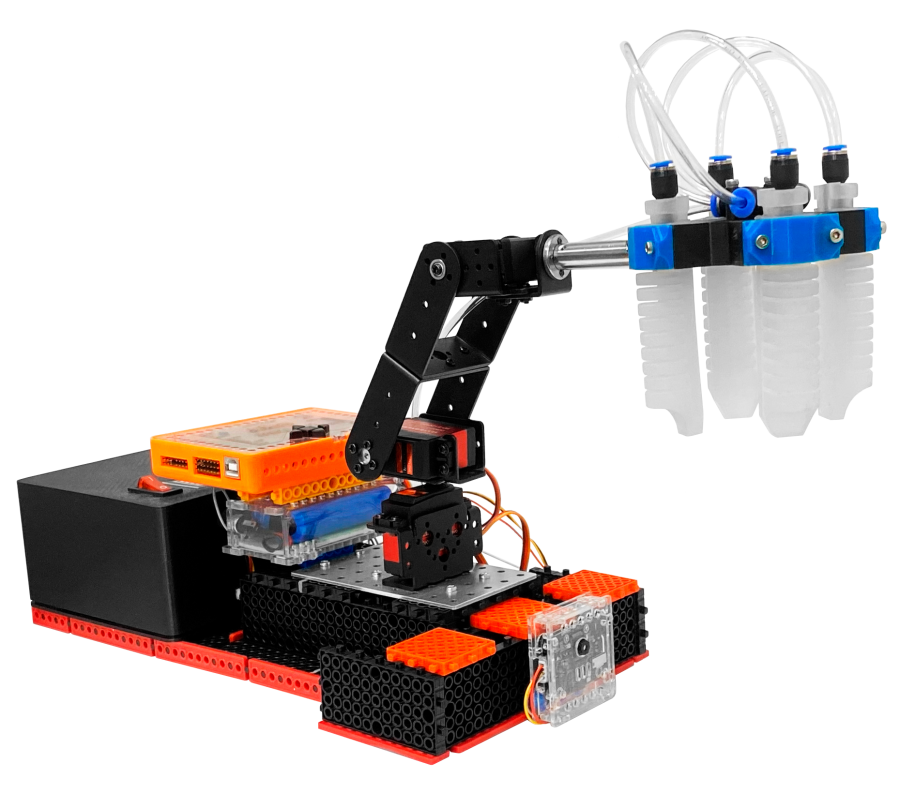 Робототехнический конструктор «Роботрек Манипулятор c мягким захватом» позволяет собрать манипулятор с 6 степенями свободы и использовать модуля технического зрения для определения различных объектов (форма, цвета, qr-коды и др.). Каждая степень свободы отвечает за определенную часть манипулятора и непосредственно ей управляет, осуществляя повороты и/или перемещения в пространстве. Конструктор обеспечивает сочетание нескольких степеней свободы одновременно и позволяет максимально точно настраивать перемещение всего манипулятора. Конструктор включает ряд насадок: Металлический захват, Держатель карандаша, Электромагнит, Мягкий захват (Комплект пневматического захвата для робота). Захват изготовлен из пластика и силикона и применяется преимущественно в робототехнике, автоматизации производства и сельском хозяйстве. Его основная задача — уменьшить риск повреждения зажимаемого (или удерживаемого) объекта.