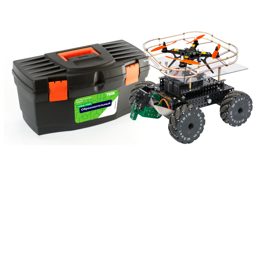 Благодаря передовым технологическим решениям, ТРИК Геоскан Расширенный раскрывает огромные возможности в изучении беспилотных аппаратов. Основа набора – это полноприводная четырехколесная платформа, с возможностью установки меканум колес, обеспечивающими всенаправленное движение робота. В отличие от предыдущих наборов линейки в Расширенный входит квадрокоптер Геоскан Пионер в базовой комплектации, которую можно расширить за счет дополнительных модулей. В комплект ТРИК Геоскан Расширенный входит лидар, с помощью которого можно создавать 2D карту помещений и тепловизор, позволяющий наблюдать и анализировать распределение температуры различных объектов. Все устройства программируются в среде TRIK Studio как на визуальном, так и на текстовом языках (Python, JavaScript, Lua).В состав набора входят набор Гескан Пионер.