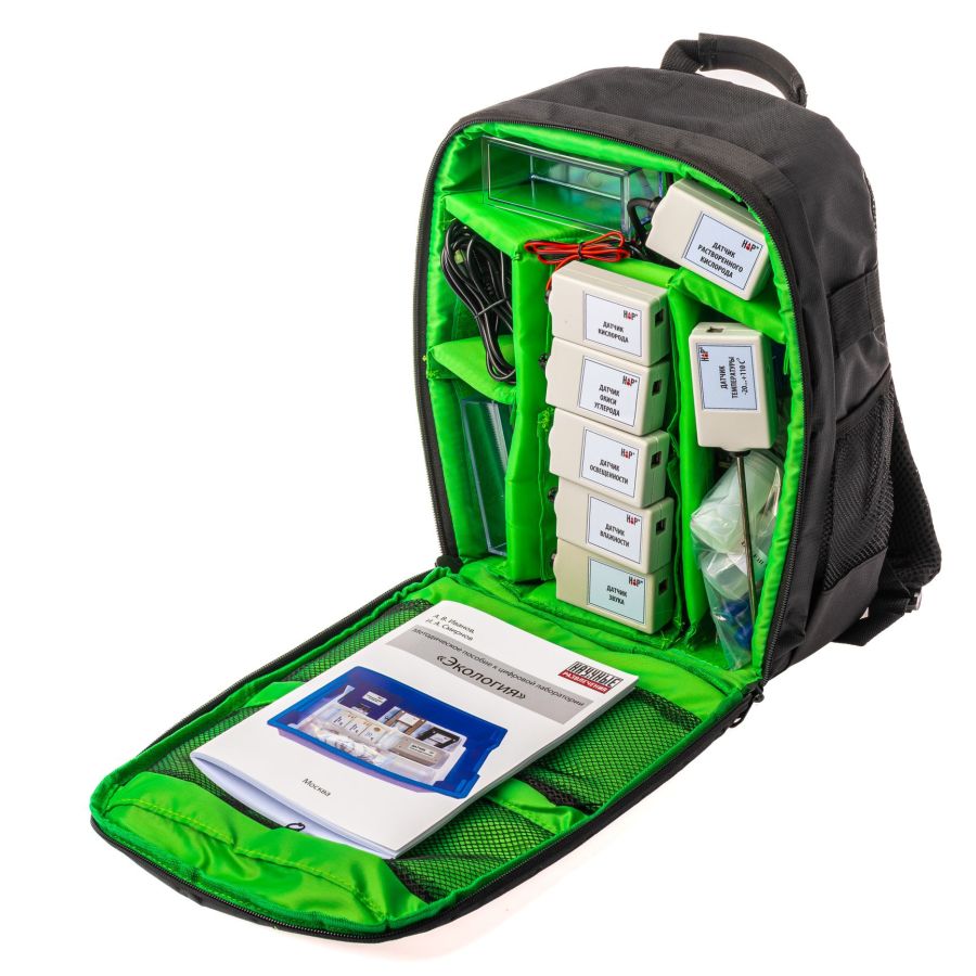 Цифровая лаборатория по экологии (полевая) предназначена для проведения учебного экологического мониторинга инструментальными методами в полевых условиях. Комплектность лаборатории позволяет выполнить школьникам индивидуальные исследования и работы по проектной деятельности. Отличительной особенностью полевой цифровой лаборатории является размещение всего оборудования в рюкзаке, что обеспечивает мобильность и позволяет проводить исследования в полевых условиях. Позволяет обучать основным этапам проведения экспериментального исследования, а также позволяет проводить с учениками совместные исследования. Измерение физических величин осуществляется с помощью цифровых датчиков, которые подключаются к USB-порту ноутбука или планшета.